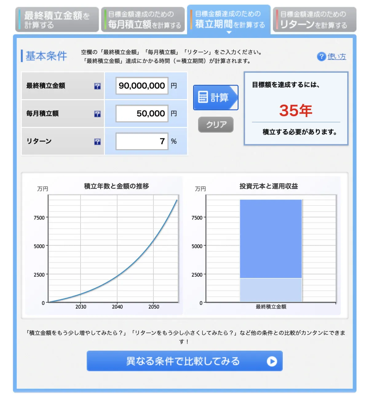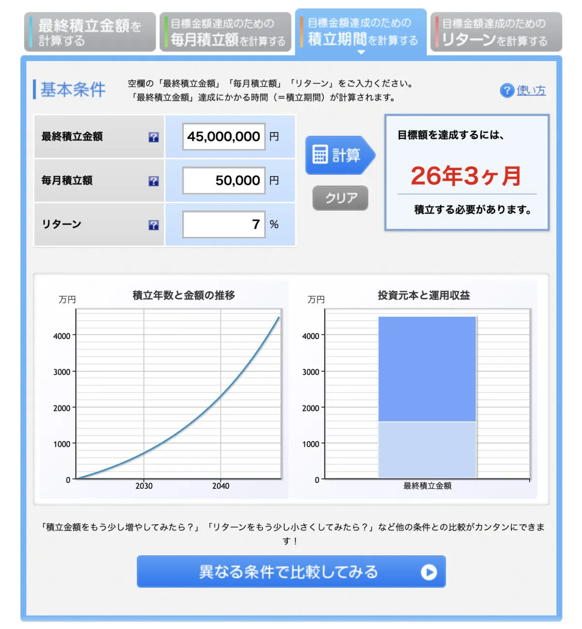 サイドFIREの方が10年近く早く達成できる結果になりました。