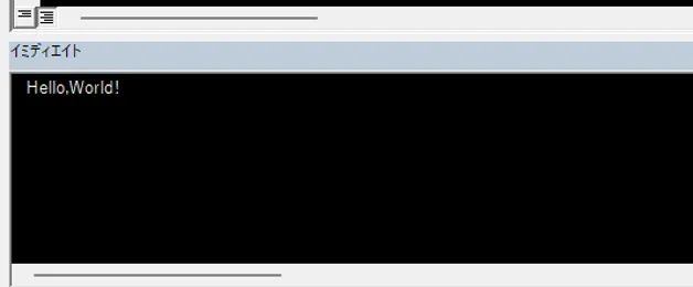実行すると、イミディエイトウィンドウに「Hello,World!」と表示されていることが確認できると思います。