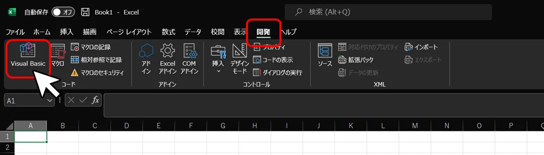基本的に、Excelの初期設定では「開発」タブは表示されていません。