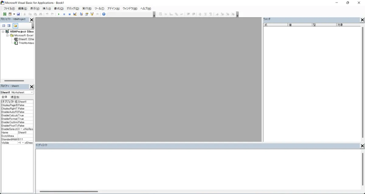 VBAはこのVBEに記述することで、動くようになります。