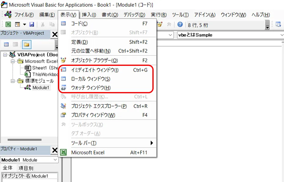 VBEの重要な画面