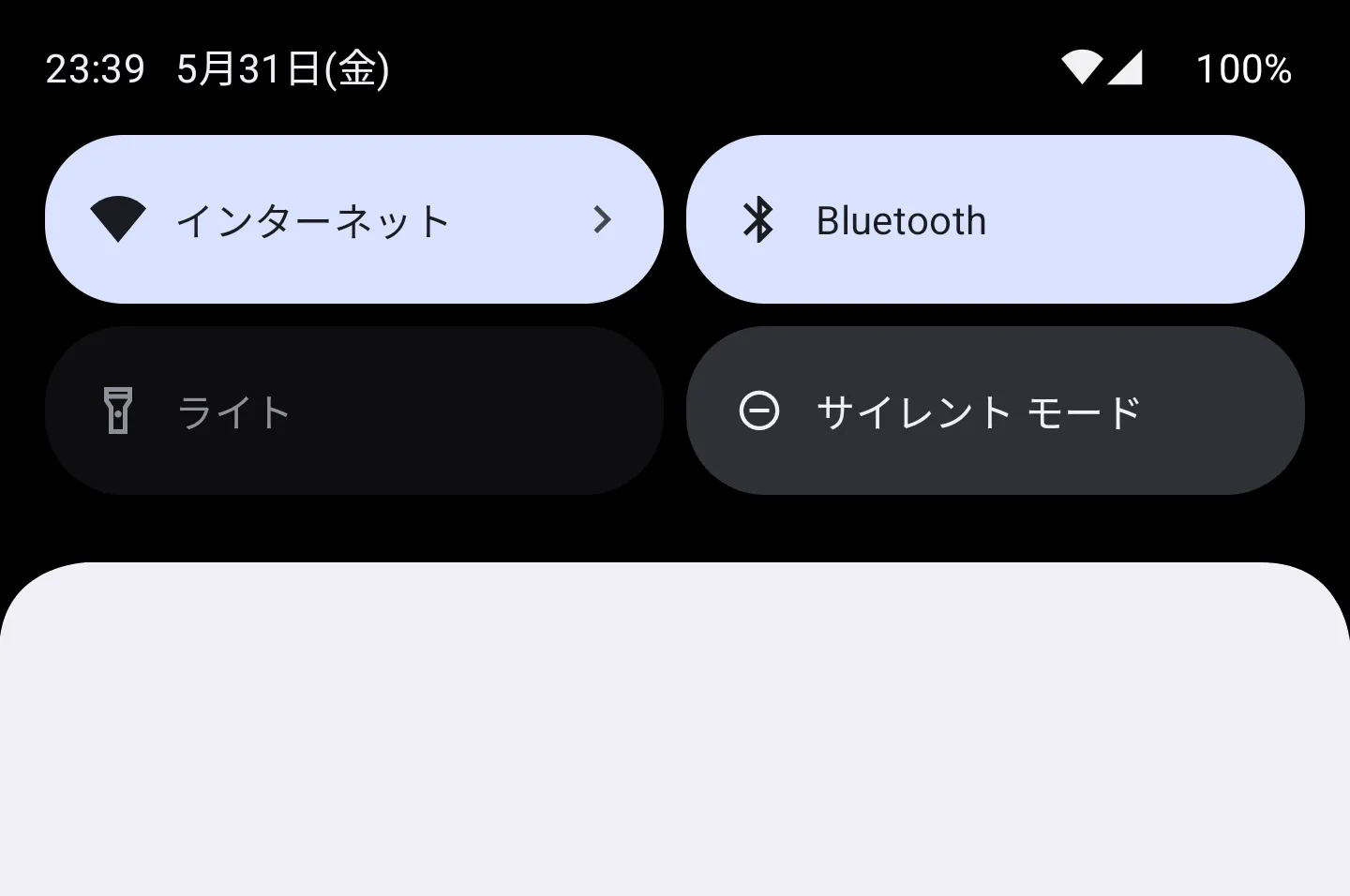 これが地味に便利で、例えばAndroid14でステータスバーを下げた時のWi-Fiなどの画面。