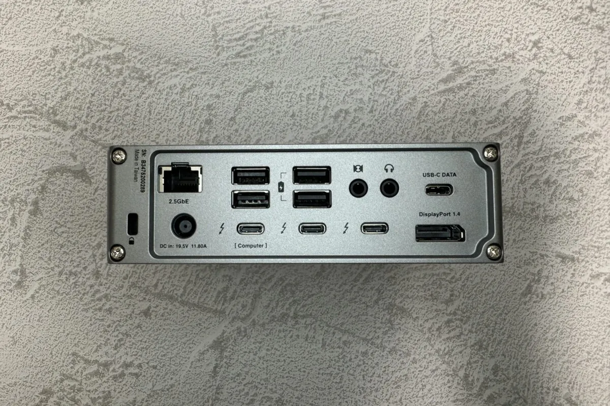 | ポート | Thunderbolt 4 (40Gb/s) x 3 USB-C (10Gb/s) x 3 USB-A (10Gb/s) x 5 DisplayPort 1.4 x 1 SD 4.0 (UHS-II) x 1 microSD 4.0 (UHS-II) x 1 2.5ギガビットイーサネット x 1 前面オーディオコンボ入力/出力(3.5mm) x 1 背面オーディオ出力(3.5mm) x 1 背面オーディオ入力(3.5mm) x 1 DC入力(19.5V 11.80A) x 1 |