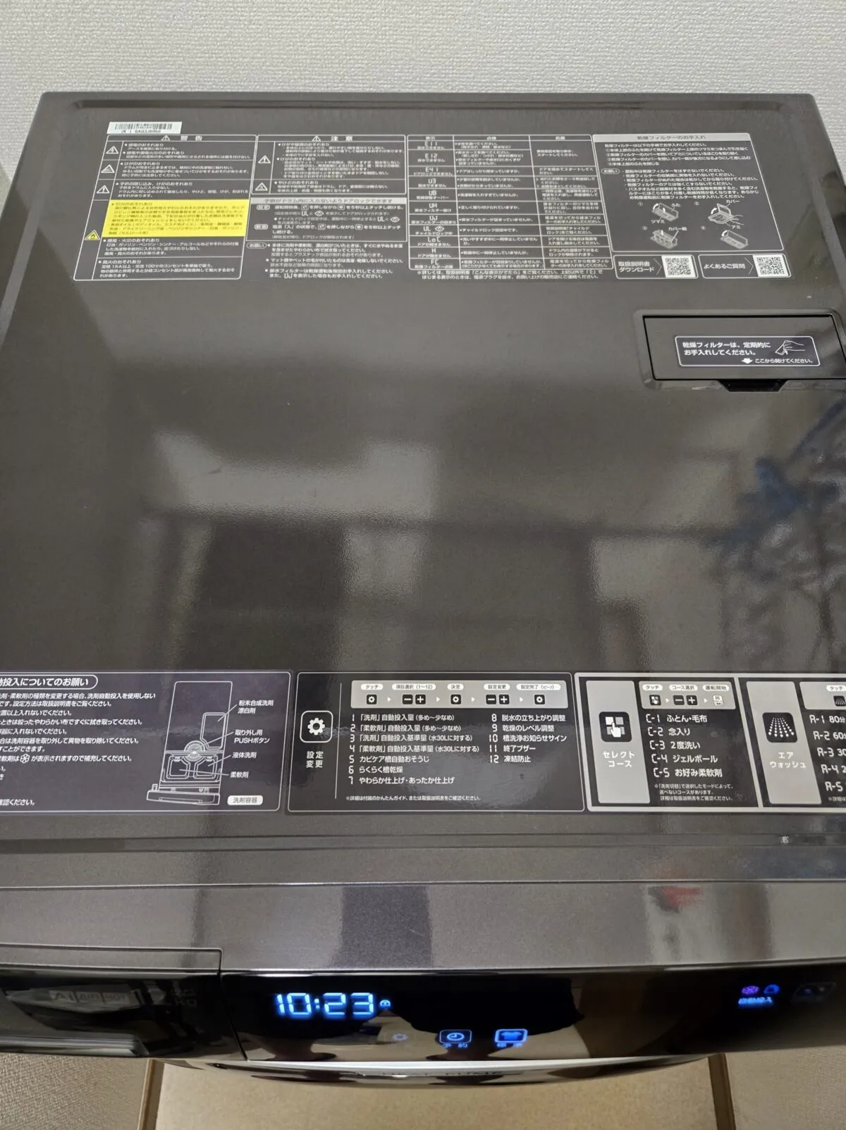 一応、天板によく使うであろうコード値と設定方法などが書かれていたり、取説とは別にスターターガイドがありますが、月一くらいの洗濯槽の掃除などは取説が必須になります。